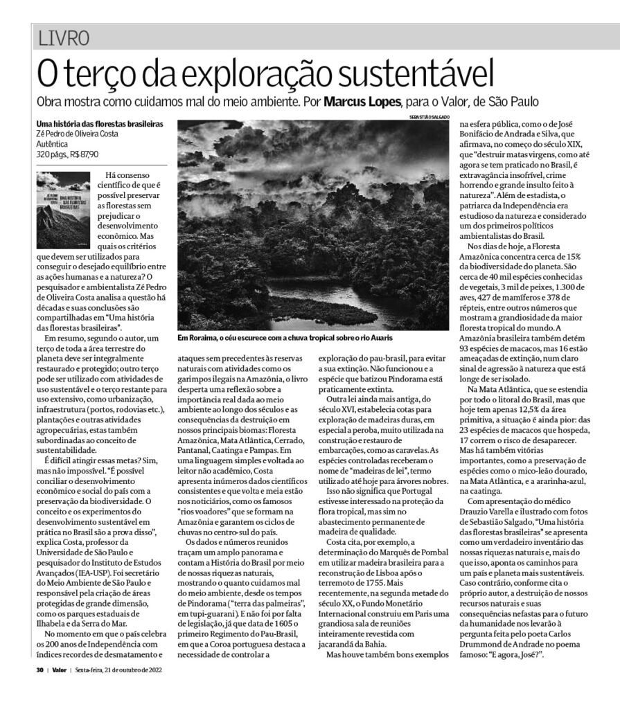 Neste texto, o jornalista Marcus Lopes apresenta sua visão do livro “Uma história das florestas brasileiras” para o Valor, destacando como cuidamos mal do meio ambiente.